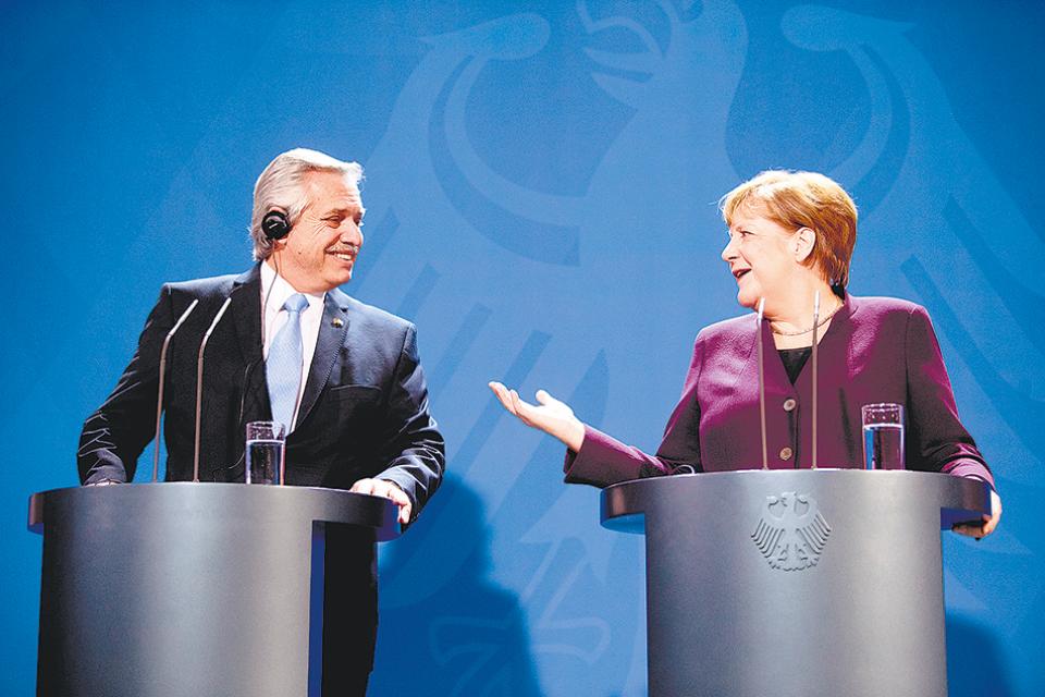 El presidente Alberto Fernández logró su objetivo de conseguir el apoyo de la canciller alemana Angela Merkel a la estrategia de renegociación de la deuda con el Fondo Monetario Internacional. Merkel escuchó durante la cena en la sede del gobierno alemán la exposición del ministro de Hacienda, Martín Guzmán, quien le adelantó los ejes de la propuesta que llevará la semana que viene a Congreso, que tiene como principio rector la "sustentabilidad" de nuevos plazos que acompañarán la reactivación económica. Pese al inusual horario nocturno, el encuentro se extendió casi una hora más de lo previsto y, a su término, Merkel salió hasta la vereda para despedir a Alberto Fernández. En la comitiva argentina percibieron una buena sintonía entre ambos. El Presidente volvió al hotel de muy buen humor.