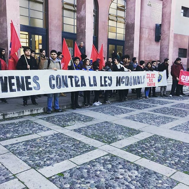 El estatuto laboral juvenil, es un proyecto que impulsa el Gobierno de Sebastián Piñera para establecer la contratación sin sobresaltos de mano de obra principalmente en el rubro de servicios. Por eso fue bautizado como “Ley McDonalds” por sindicatos y organizaciones estudiantiles, que protestaron en este concurrido centro comercial capitalino.