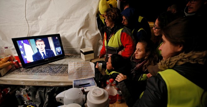 El mandatario galo compareció en un mensaje a la nación tras reunirse durante cuatro horas con sus principales ministros, los sindicatos y la patronal para explorar una solución a las revueltas que comenzaron hace un mes contra la subida del impuesto sobre los combustibles y que han ido aumentando hasta reclamar cambios profundos en política y economía.
