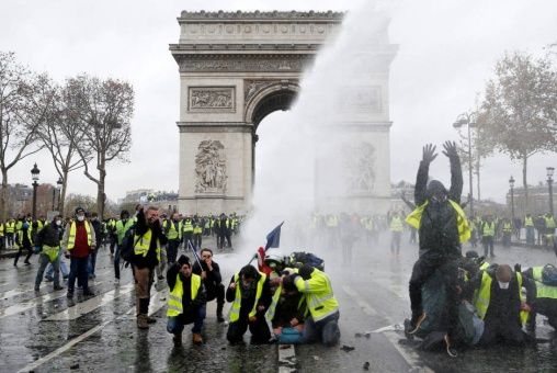#FRANCIA El movimiento de los chalecos amarillos son bloqueados en los campos elíseos de #Paris. Les impiden manifestarse en Arco del Triunfo #GiletsJaunes pic.twitter.com/Q13vvnNRu5