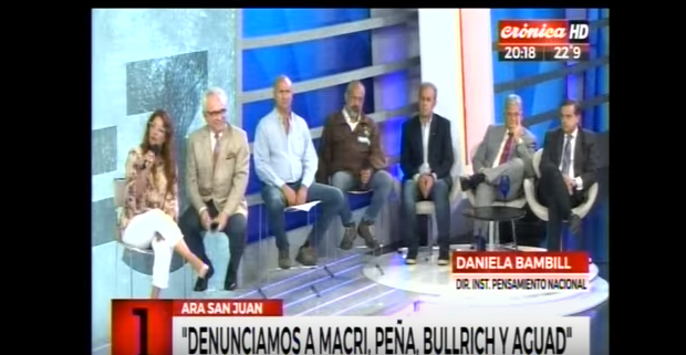 La directora del Instituto del Pensamiento Nacional Independencia, Daniela Bambill, estuvo los estudios de Crónica TV donde contó que desde el Instituto realizaron una denuncia en la Justicia Federal por traición a la patria, encubrimiento y mal desempeño de empleo público, entre otros, contra el Presidente Mauricio Macri, el Jefe de Gabinete, Marcos Peña, la Ministra de Seguridad, Patricia Bullrich y el Ministro de Defensa, Oscar Aguad.