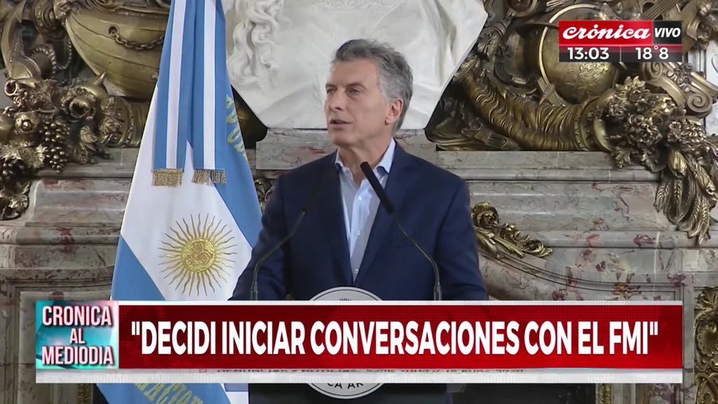 "La irresponsabilidad y la ineptitud del gobierno, por un lado, y su errónea política económica, por el otro, han puesto a la Argentina en una situación similar a la que la llevó el tristemente célebre blindaje de Fernando de la Rúa.