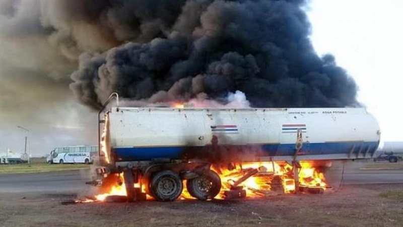 Este miércoles un grupo de sindicalistas camioneros incendiaron un camión petrolero en la localidad de Catriel para reclamar por 35 despidos de una empresa transportista de hidrocarburos.