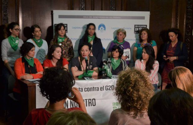 Con la consigna No en nuestro nombre, el Foro Feminista contra el G20, brindó este miércoles pasado una Conferencia de Prensa en la Legislatura de la Ciudad de Buenos Aires, en la que informó las actividades de las próximas Jornadas de Acción Contra el W20 del 1º y 2 de octubre que tendrán lugar en la Plaza del Congreso.