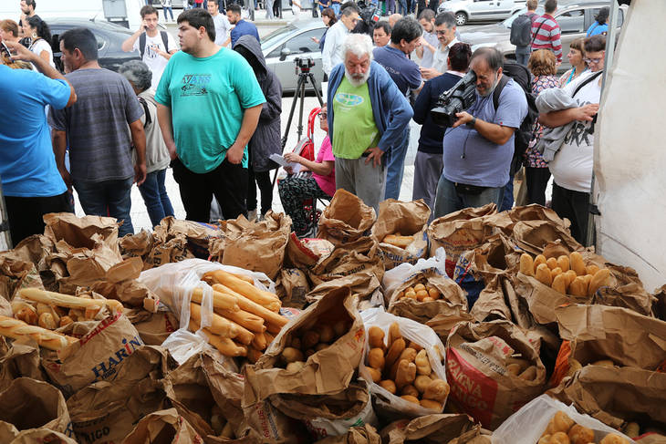 “La idea es generar diferentes unidades productivas de pan, que den trabajo a los compañeros que quedaron sin trabajo. Generar una cadena de venta en distintos lugares. Además, la MESyP viene exigiendo desde hace rato que el Estado intervenga en la producción de pan, tener una bolsa de harina especial para el pan de la República. Sabemos que esto tendrá trabas, pero sostenemos que el pan es un bien social irrenunciable”, dijo a Contexto Marcelo Ardeti referente de la MESyT, ayer presente en Plaza San Martín.