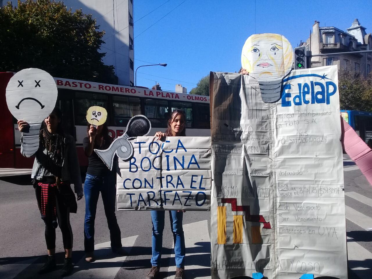 En la esquina de diagonal 80 y 5, artistas, murgueros y malabaristas mostraban carteles con mensajes contra el tarifazo y bailaban, al tiempo que automovilistas hacían sonar sus bocinas porque, mientras se llevaba a cabo el reclamo, media ciudad de La Plata quedó sin luz durante la mañana por fallas técnicas de EDELAP. Esto provocó un mayor descontento de los platenses que pasaban, en medio de un caos de tránsito porque no funcionaban los semáforos.