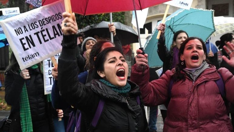 Afuera, bajo la lluvia, la manifestación de los trabajadores de prensa se hizo sentir. “La gente echada no es ni contratada, ni ingresó en los últimos cinco años, algo que tampoco justifica que #HoyFaltaTelam” escribieron en Twitter los cesanteados de la agencia.