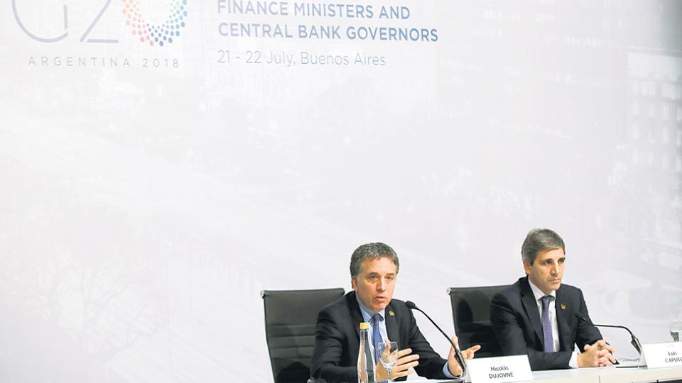 El presidente Mauricio Macri cerró ayer la cumbre de ministros de Finanzas y banqueros centrales del G-20 con un breve discurso en el que volvió a reconocer un escenario internacional adverso al referirse a las dificultades que enfrentó el país en las últimas semanas. “Tuvimos que hacer frente a algunas turbulencias debido a volatilidades externas y factores internos, pero logramos navegar por estas aguas agitadas y mantener el rumbo”, aseguró. De este modo, pareció dar por superada la crisis y se limitó a agradecer el respaldo internacional y a ratificar el rumbo de su política económica de apertura comercial y financiera, pese a que el documento final de la cumbre dejó traslucir una guerra comercial declarada entre las principales potencias que amenaza con hacer temblar al planeta. Macri evitó hacer referencia a ese enfrentamiento y destacó que “el G-20 es mucho más que una declaración de líderes. Se trata de un proceso gradual de diálogo pluralista y negociación global”. En una conferencia de prensa posterior, el ministro de Hacienda, Nicolás Dujovne, llegó a decir que “la reunión del G-20 fue un verdadero éxito”, aunque al momento de resaltar lo positivo apenas destacó el diálogo y la búsqueda de consenso, consenso que en temas clave como el comercio internacional no se pudo alcanzar.