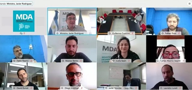En la reunión virtual estuvieron presentes el presidente de Fuerza Solidaria, Leandro Lurati; la subsecretaria de Agricultura, Ganadería y Pesca, Carla Seain; y el director de Cooperativas Agropecuarias, Nicolás Bento.