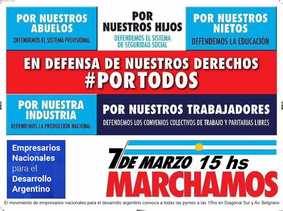 Empresarios Nacionales para el Desarrollo Argentino convocan a la movilización del 7 de marzo