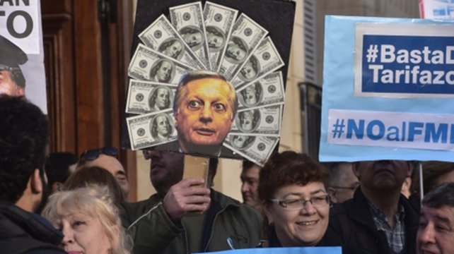 La Multisectorial se congregó ayer temprano por la mañana en la intersección de las peatonales Córdoba y San Martín. Con globos negros, pancartas con las leyendas "Chau grieta, con el FMI perdemos todos" y "La luz aumentó 541 por ciento. Congelar tarifas", imágenes del rostro del ahora ex ministro de Energía nacional, Juan José Aranguren, y del "Capitán Veto", además de consignas como "Patria sí, colonia no", un centenar de manifestantes marchó hasta la puerta del Concejo, ya que no se había instalado el vallado previsto como barrera de seguridad sobre calle Buenos Aires si venía el presidente a Rosario.