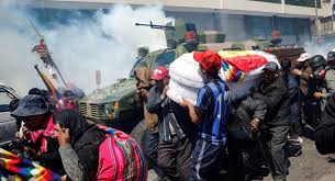 Un multitudinario cortejo fúnebre recorre las calles de El Alto y La Paz. Por delante van dos féretros y detrás miles y miles de dolientes. Son gente humilde; pobladores de El Alto, artesanos, campesinos, vecinos, madres, indígenas de las provincias de La Paz, Potosí, Cochabamba y Oruro. Han caminado con su dolor cerca de diez kilómetros, y a su paso salen trabajadores, comerciantes y estudiantes llorosos que se persignan, aplauden y entregan agua y pan a los que marchan. La ciudad está paralizada, y la gente de los barrios populares está de luto. Solo el 20 de noviembre, en la zona de Senkata, ocho pobladores fueron asesinados con armas de fuego militar, más de un centenar fueron heridos de bala, llegando a treinta y cuatro los muertos en los últimos nueve días del golpe de Estado en Bolivia.