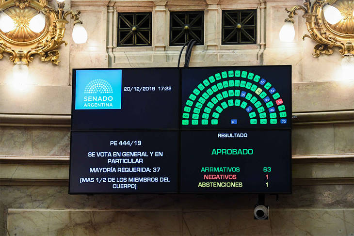 En la primera sesión de Cristina Fernández como presidenta del cuerpo, se dio media sanción al proyecto de Consenso Fiscal 2019, por 63 votos positivos, uno negativo y una abstención. Era un pedido expreso del presidente Alberto Fernández, quien había incluido el tema en el llamado a sesiones extraordinarias, luego de haber sellado el acuerdo con los 24 mandatarios y mandatarias.