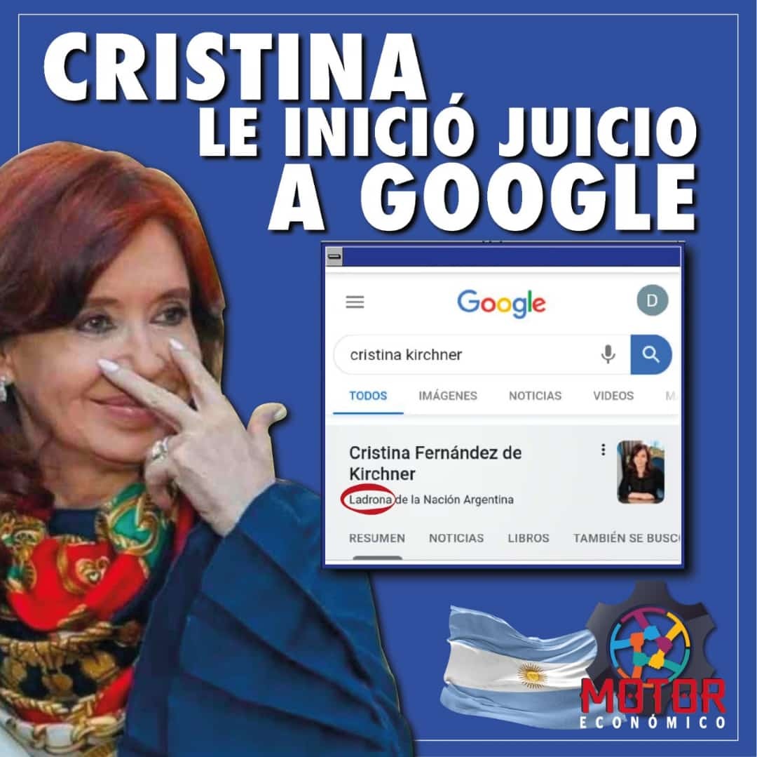 La vicepresidenta Cristina Fernández de Kirchner explicó en un hilo de Twitter por qué demandó a Google. Se sintió difamada cuando el sitio, en vez de poner su cargo actual, la llamó "Ladrona de la Nación".