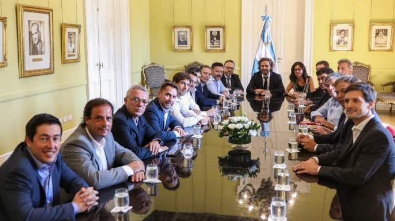 El jefe de Gabinete, Santiago Cafiero, recibió esta tarde a intendentes de la provincia de Buenos Aires en el Salón de los Científicos de la Casa Rosada para coordinar el monitoreo del plan Precios Cuidados.