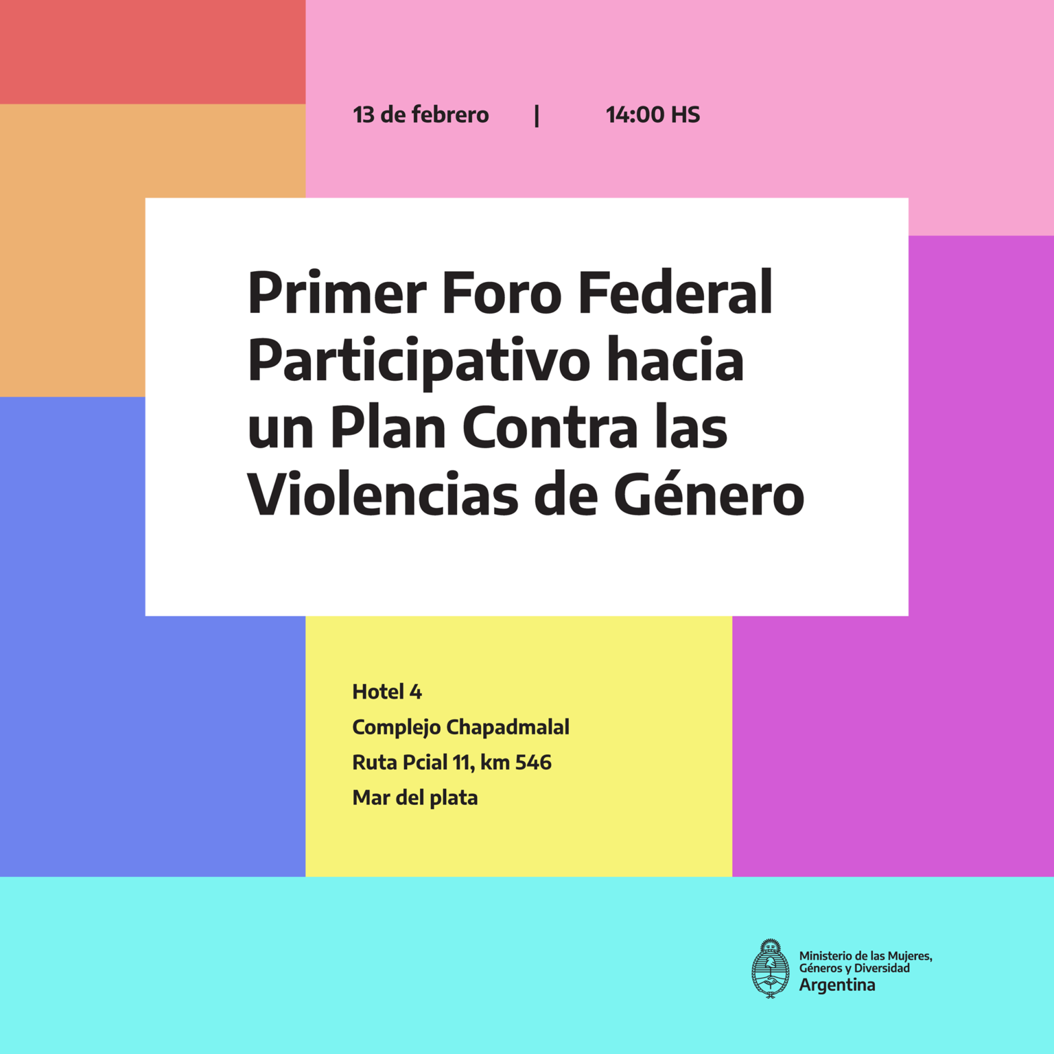 Los foros —que se desarrollarán entre los meses de febrero y abril— serán uno de los ámbitos que pensamos para intercambiar miradas acerca de los diversos modos y abordajes de la prevención, la asistencia integral y protección de las personas en situación de violencia por motivos de género. Asimismo, permitirán visibilizar las particularidades y diversidades culturales propias de cada una de las regiones en las que se realizarán:Chapadmalal, para los distritos del interior de la provincia de Buenos Aires. Para las provincias del NEA/LITORAL (Formosa, Chaco, Corrientes, Misiones, Entre Ríos). Para las provincias de PATAGONIA NORTE (La Pampa, Río Negro, Neuquén). Para AMBA (Conurbano bonaerense y Ciudad Autónoma de Buenos Aires). Para las provincias de CUYO (Mendoza, La Rioja, San Juan y San Luis). Para las provincias de PATAGONIA SUR (Chubut, Santa Cruz y Tierra del Fuego). Para las provincias de NOA (Catamarca, Santiago del Estero, Catamarca, Tucumán, Salta y Jujuy). Para las provincias del CENTRO (Córdoba, Santa Fe). Este primer foro será en Chapadmalal, el 13 de febrero. Para participar, inscribite completando el siguiente formulario o bien mandando un mail a forosfederales@mingeneros.gob.ar “